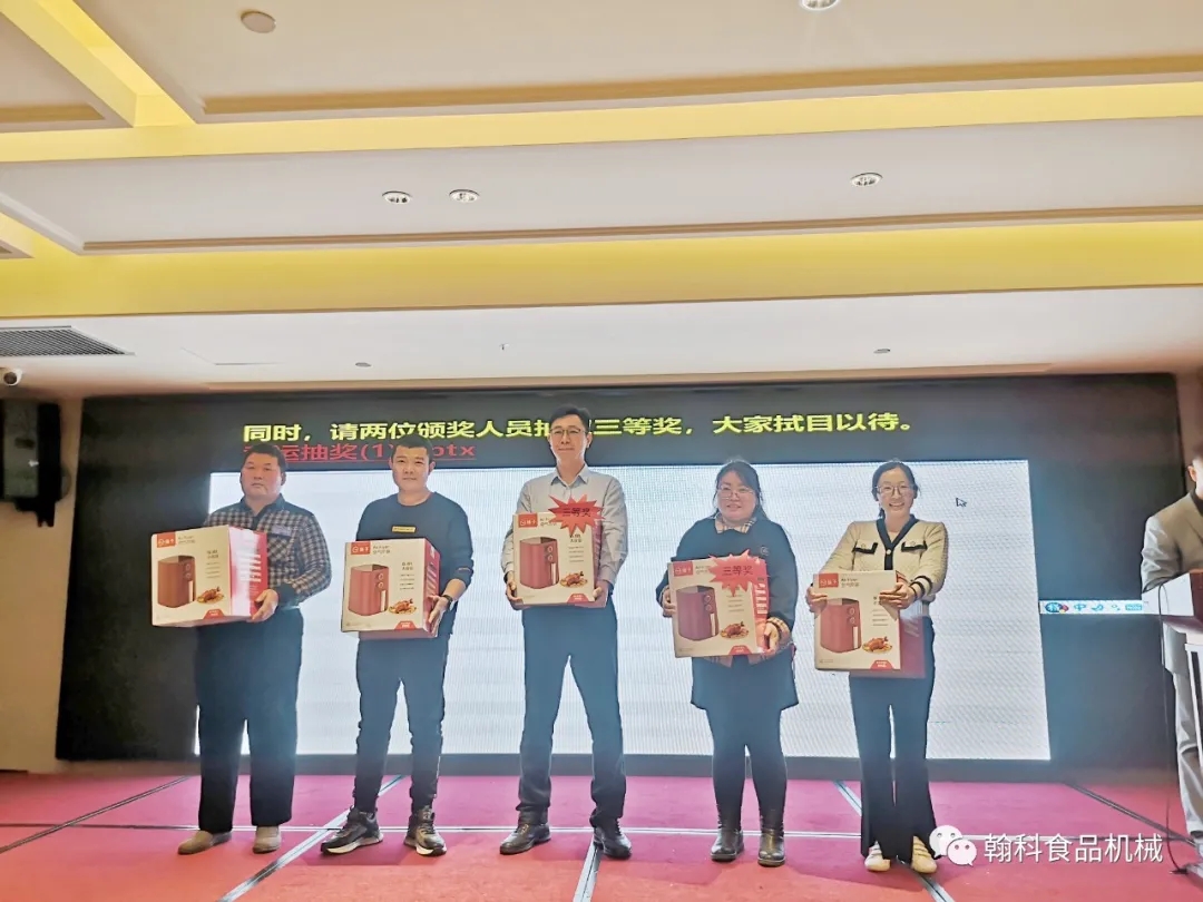 同时大家期待的抽奖环节穿插进行,空气炸锅,烤涮一体机,九阳电饭煲等大奖纷纷被送出,期间网络支持部,行政部,车间生产部门也带来了精彩纷呈的节目,整个会场处处洋溢着欢声与笑语,激情与力量!