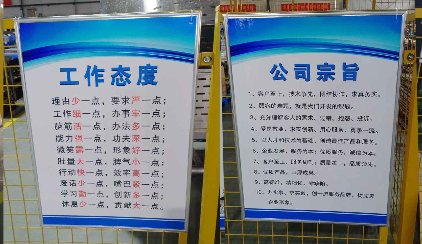 进入车间也会看到企业文化的影子。如:工作原则、流程、效率提升的办法等。这些标识的悬挂不仅美化了现场环境,更是工友们学习记忆的好看板,对此,我们采访了部分伙伴,大家非常喜欢这种接地气、实在的标识看板。