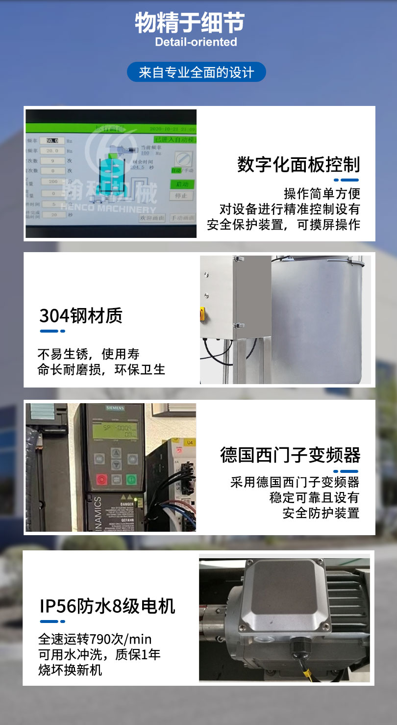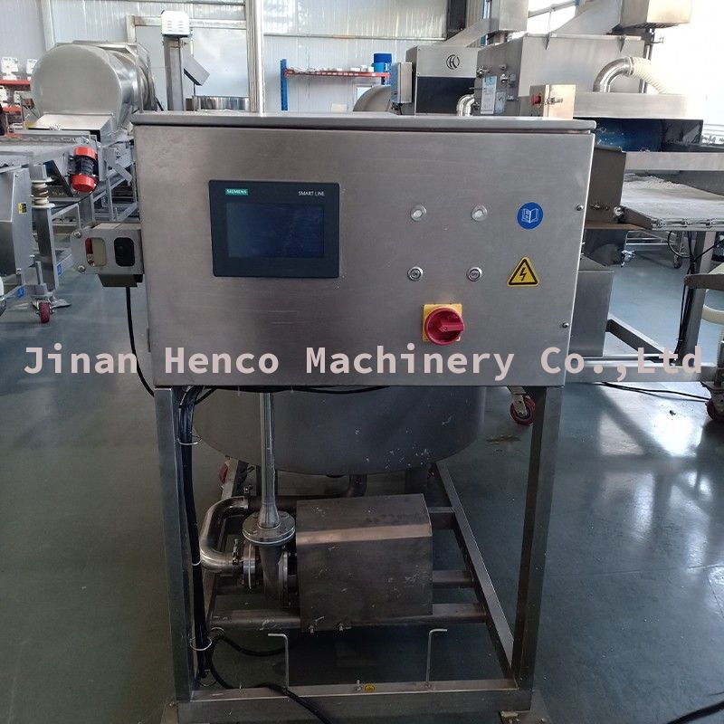 混料缸设有夹层,可通过冰片或冷媒对浆液进行保温。液体及裹粉定量控制装置(选配)。
